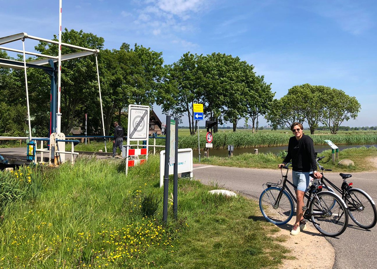 Wij gaan hier de brug over terug naar Ouderkerk, maar wie hier naar rechts gaat komt uit bij de Vinkeveense plassen.